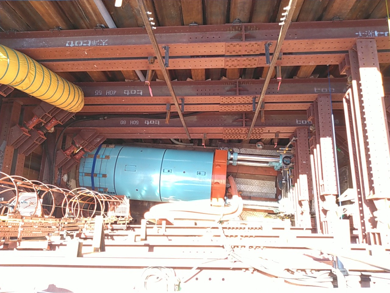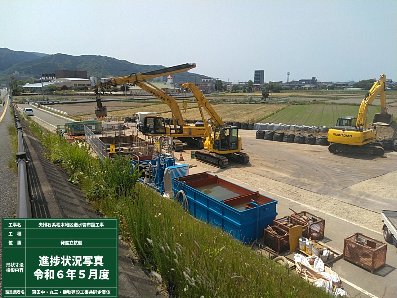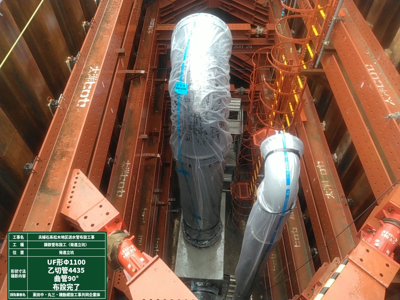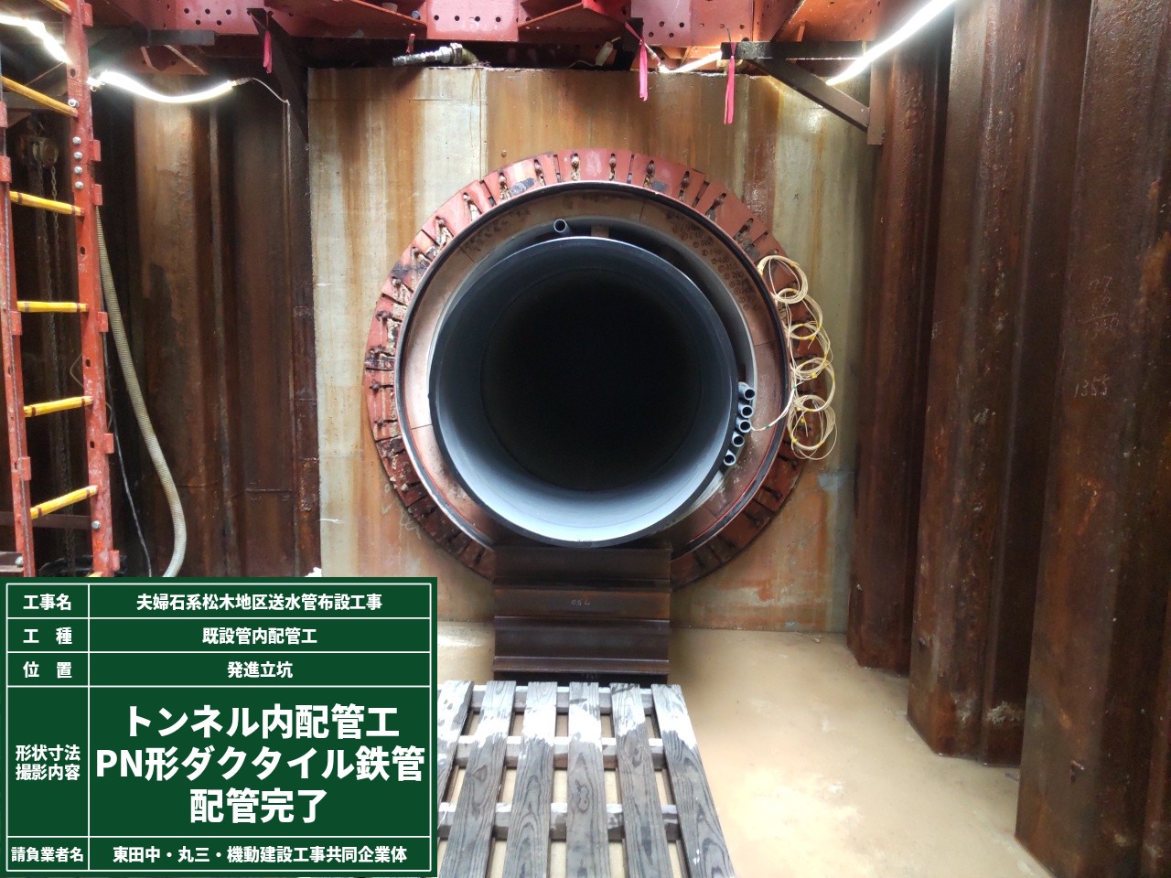送水管布設 ダクタイル鋳鉄管Φ1100mm L=725m、泥水式推進工Φ1650mm L=695m |